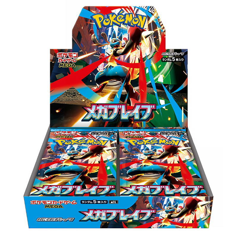 Die Pokémon Mega Brave Booster Box (M1L, Japanisch) ist Teil der japanischen Sammelkartenspiel-Erweiterungen. Jede Box enthält 30 Boosterpacks mit jeweils 5 Karten.